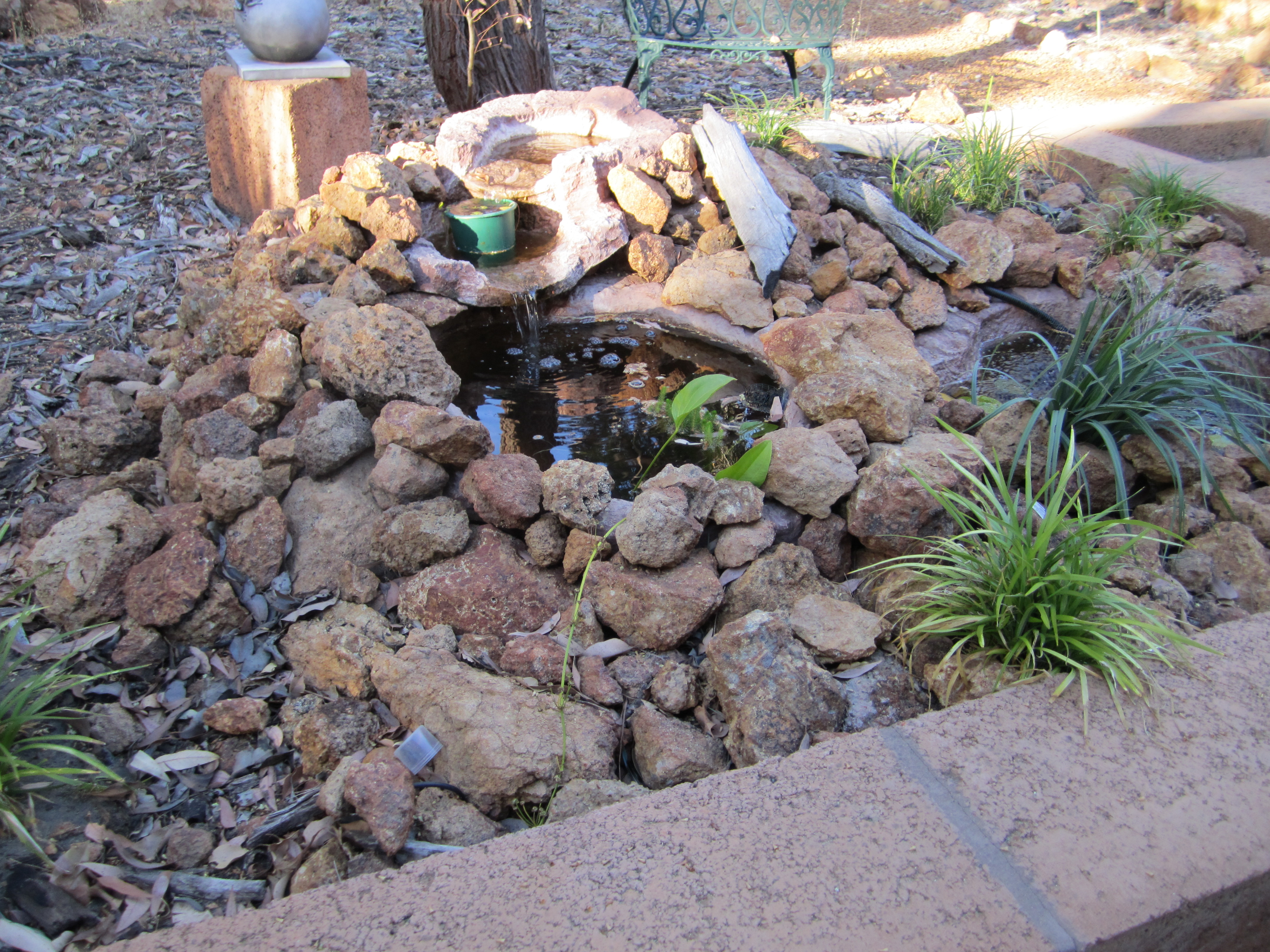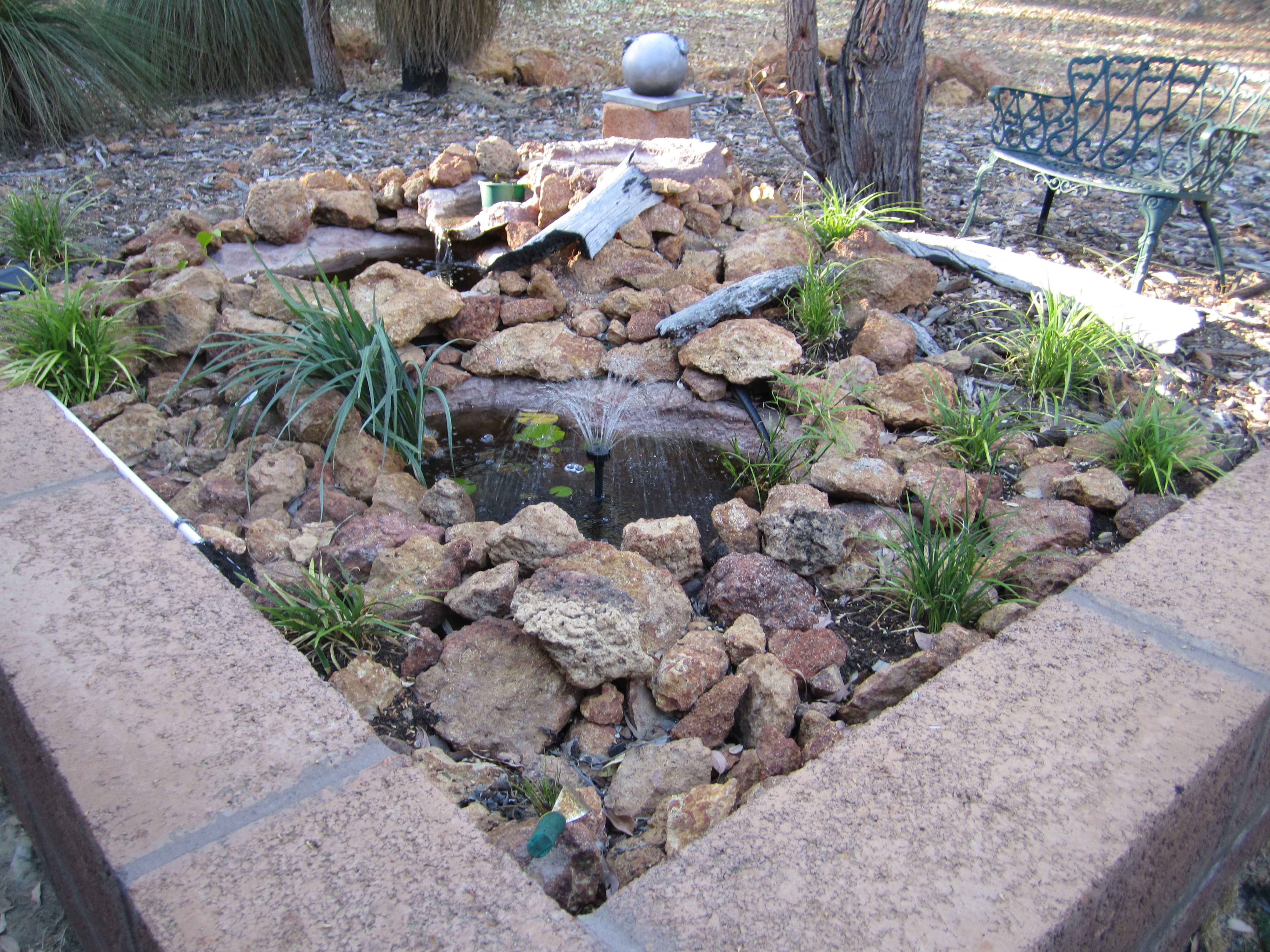 A native garden in the hills needed a some softening, what better way than to use some water and soft foliage. This garden pond was created utilising the fibre glass shells and some local coffee rock from site.